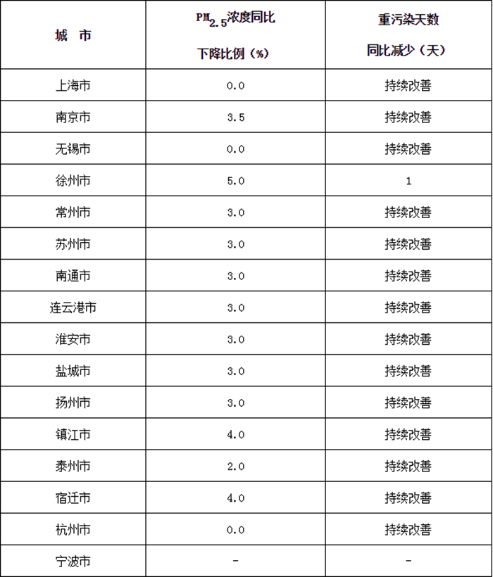 主要目標:穩中求進,推進環境空氣質量持續改善,長三角地區全面完成2019年環境空氣質量改善目標,協同控制溫室氣體排放。秋冬季期間(2019年10月1日-2020年3月31日),PM2.5平均濃度同比下降2%,重度及以上污染天數同比減少2%(詳見附件1)。